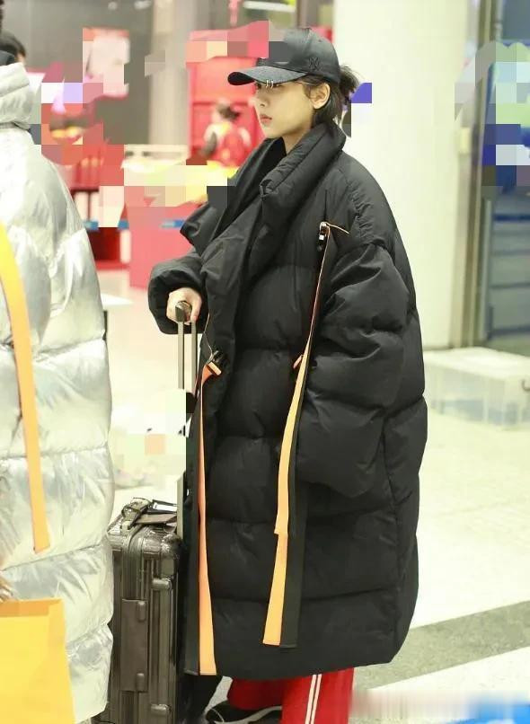 杨紫越来越会穿! 长款羽绒服+黑色打底衫+红色运动裤, 时髦又高级
